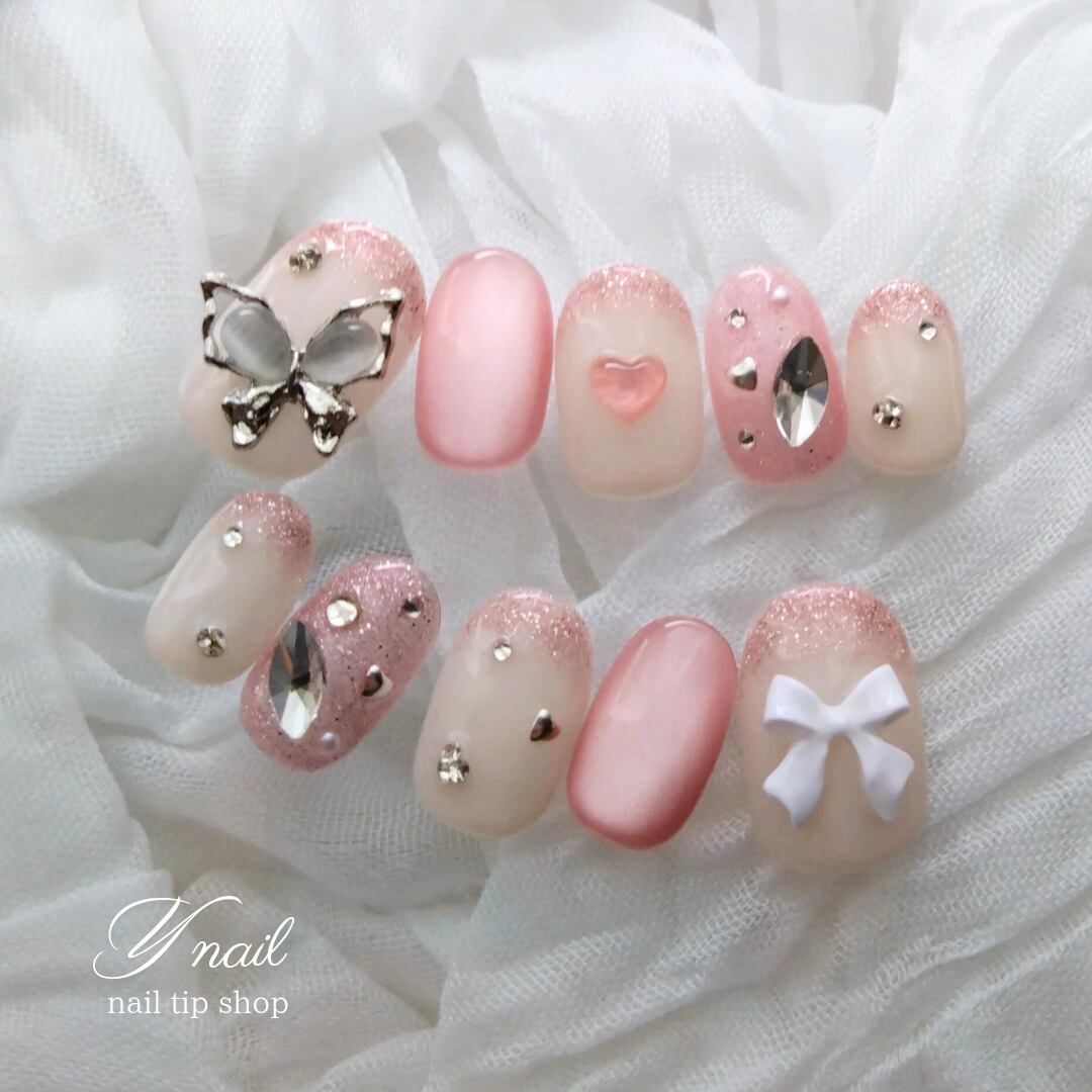 蝶々パーツ+ピンクマグネットで手元キラキラ**