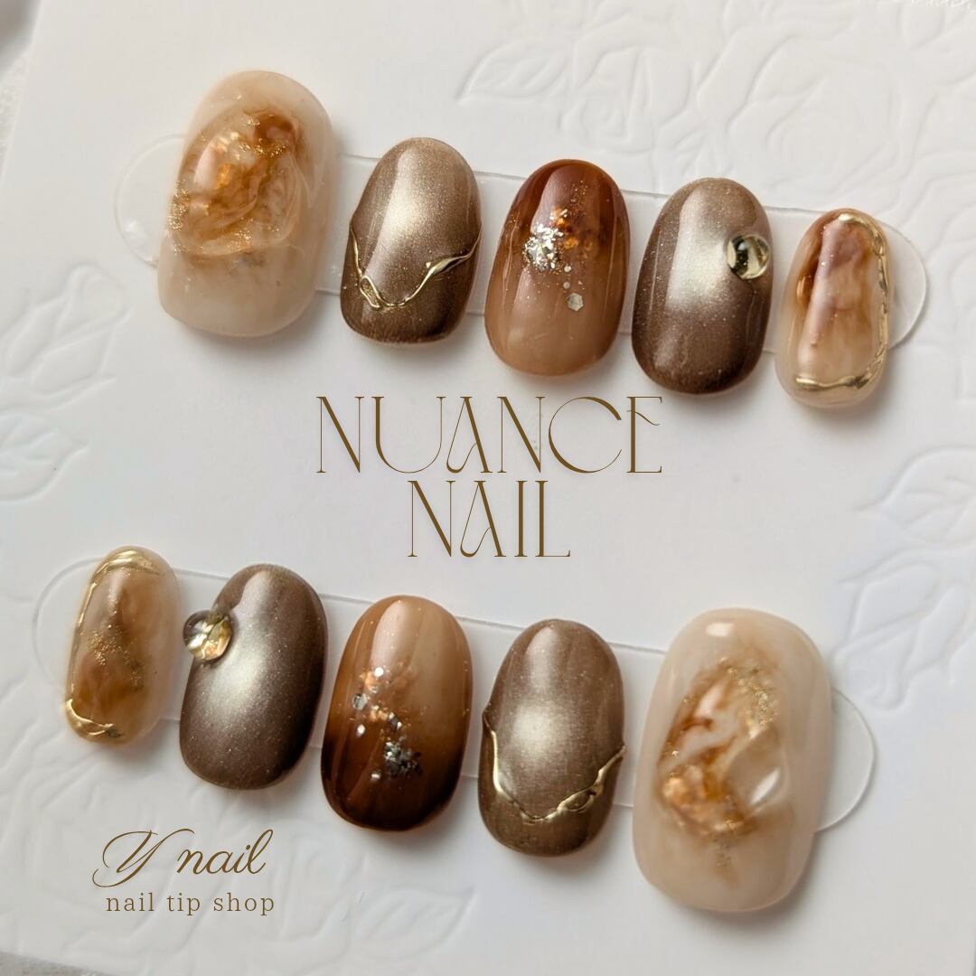 茶とベージュのニュアンスネイル。