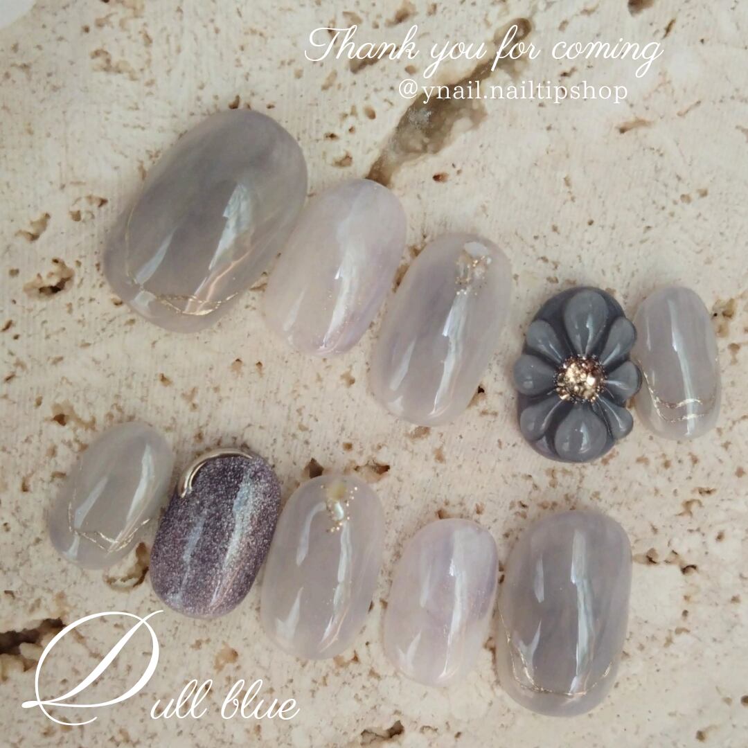 肌なじみの良いくすみブルーのニュアンスネイルデザイン♡